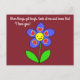 C'est une carte postale mignonne avec des fleurs bleues et souriantes qui dit aussi "Quand les choses deviennent difficiles, regardez-moi et sachez que je vous aime !" écrit en mignonnes lettres de couleur blanche cursive.