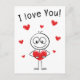 Carte Postale Je t'aime Stick Figure Cœurs Mignons