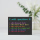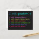 La carte postale a un arrière - plan noir avec un texte multicolore qui rappelle les vieux tableaux de bord de maison de l'école.