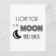 Carte Postale je vous aime à la lune et dos noir blanc