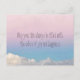 La carte postale avec le ciel qui a été peinte en rose doux et violet par le coucher du soleil.