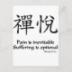Kanji pour la joie zen avec le proverbe bouddhiste zen, "La douleur est inévitable, la souffrance est facultative".