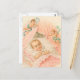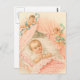 Bébé magnifique dans un lit à baldaquin rose et blanc orné. Deux chérubins ailés planent autour de sa tête.