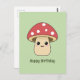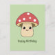 Une carte d'anniversaire verte avec une illustration d'un joli champignon dans le style cartoon et un texte personnalisable en dessous ! Cela pourrait être parfait pour l'envoyer à un enfant, un mycologue, ou un ami qui aime les personnages Kawaii et la nature !
