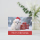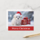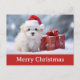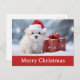 Envoyez de Joyeux voeux de Noël à votre famille et à vos amis cette année avec cette carte postale avec un mignon chien en chiot portant un chapeau santa dans la neige et un cadeau!