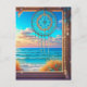 Beau attrapeur de rêve accroché à une fenêtre qui surplombe la plage de l'océan aux vagues bleues.