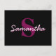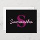 Carte Postale Joli script de monogramme rose et noir personnalis
