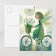Une belle fée fait du vélo avec un panier plein de fleurs