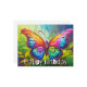 Cette carte postale unique présente une illustration d'un papillon coloré flottant. Cette carte d'anniversaire serait vraiment merveilleuse pour les amis, la famille et les collègues de travail.