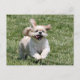 Crème et blanc Chih Tzu chien joyeux courir avec ses oreilles en arrière et un gros sourire sur son visage voulant quelqu'un jouer avec la carte postale photo