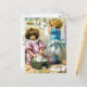 Un joli exemple vintage de deux petites filles, occupées à laver les vêtements de leur poupée dans un lavabo en bois et à les accrocher sur le fil de linge pour sécher. Super travail d'équipe !