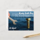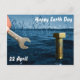 Carte postale jour des terres avec boulon et clé sur le cadre naturel du lac de couleur sélective bleue.