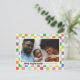 Ravissante et lumineuse, cette carte de vacances à motifs damier présente une photo d'orientation paysage et un texte facile à customiser. L'envers a une adresse de retour pré-imprimée et de la place pour un message de mise à jour plus long ou supprimer et écrire à la main vos propres messages de joie. Utilisez le bouton bleu Edit Design pour encore plus de contrôle de conception : changer les couleurs, échanger les polices et plus encore - vous pouvez personnaliser à peu près tout pour cette carte parfaitement unique.