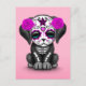 Carte Postale Jour mignon violet du chien chiot mort rose
