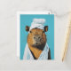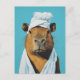 Portrait charmant et fantaisiste d’un capybara, le plus grand rongeur du monde, habillé en tenue spa. L'animal est drapé dans une serviette blanche avec un autre enveloppé autour de la tête, dressé contre un arrière - plan bleu apaisant. L’expression calme et sereine du capybara donne l’impression de profiter d’un moment de détente, ajoutant une touche d’humour et de chaleur à la scène. Le brossage détaillé met en valeur la fourrure du capybara et la texture douce des serviettes, faisant de cette oeuvre une pièce délicieuse et légère.