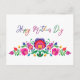 Carte postale Joyeuse Fête des Mères avec composition folklorique et voeu coloré Bonne Fête des Mères en haut. Design inspiré de l'art populaire polonais de la région de Lowicz. Le texte de la page arrière est entièrement personnalisable. Tout ce dont vous avez besoin, c'est de signer en bas et une carte postale unique est prête à faire sourire quelqu'un.