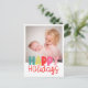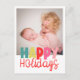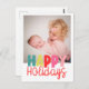 Cette carte postale simple et contemporaine de voeux de Noël est personnalisable avec votre propre photo. La légende colorée dit "Fêtes heureuses"