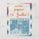 Une carte ancienne de Versailles, imprimée sur papier texturé contre un arrière - plan aux rayures en relief est l'image de cette carte postale qui souhaite "un très heureux 14 juillet" en français.