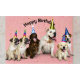 Un groupe de chiens d'animation portant des casquettes de fête, fêtant un anniversaire. Les chiens sont joyeux, heureux et ludiques à faire une fête heureuse,
