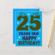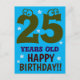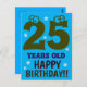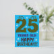 C'est une carte postale d'anniversaire 25 ans de couleur bleu turquoise amusante qui dit : 'Joyeux anniversaire 25 ANS !!' en lettres colorées amusantes !