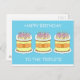 Carte Postale Joyeux anniversaire aux Triplets, gâteaux et bougi