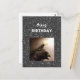 Carte Postale Joyeux Anniversaire. Chat smoking avec une rose.