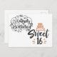 Une carte d'anniversaire mignonne et heureuse pour seize ans. Réalisée en écriture avec un gâteau sur le devant.