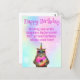 Carte Postale joyeux anniversaire drôle chat avec script rose be