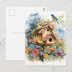 Carte Postale Joyeux Anniversaire Maisonnette Fleurie et Oiseaux