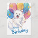 Samoyède Mignon avec ballons d'anniversaire souhaite Joyeux Anniversaire