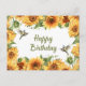 Carte Postale Joyeux Anniversaire Tournesols et Oiseaux à l'Aqua