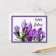 Carte Postale Joyeux Anniversaire violet crocus fleurs boho mign
