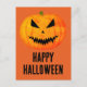 Carte postale orange noire Jack O'Lantern Halloween cool. Vous pouvez customiser du texte noir et de l'arrière - plan orange. Le visage de Citrouille de Jack O'Lantern orange est mal.