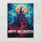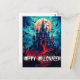 Cette carte postale Happy Halloween unique présente une illustration de maison hantée déplaisante. N'hésitez pas à ajuster toutes les options disponibles comme vous le souhaitez.