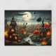 Cette carte postale d'Halloween créative illustre un village sinistre hanté après la tombée de la nuit, sous une pleine lune. N'hésitez pas à ajuster toutes les options disponibles comme vous le souhaitez.
