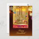 Joyeux Hanoukka Carte de vœux de vacances juive magnifique. Fête juive Hanoukka fond avec des symboles traditionnels de Chanukah - Menorah en or, candélabre Hanukkiah et bougies, toupies en bois (dreidels), beignets, étoile de David et motif de fond lumineux. Décoration de la fête de Hanoukka. Jérusalem, Israël. Invitations et papeterie, cartes de vœux, cartes postales, conception de carte magnifique avec modèle de texte Personnalisez-les en ajoutant un texte de vœux, un nom et plus encore. Décoration graphique sur deux côtés