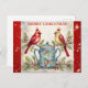 Carte Postale Joyeux Noël mignon Aquarelle Cardinal
