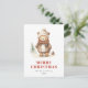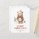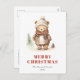 Cette carte postale de vacances confortable présente une aquarelle illustrant un ours brun mignon. Les mots "MERRY CHRISTMAS" apparaissent dans des lettres serif rouge rond qui se coordonnent avec l'art. Ajoutez le nom de votre famille et l'année à l'avant en italique gris fusain, et votre adresse de retour et un bref message au verso.