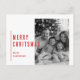 Envoyez vos souhaits de vacances les plus chauds avec cette carte postale de Noël rouge élégante avec une photo de famille noir et blanc intemporelle. L'audacieux "Joyeux Noël" en rouge festif contraste magnifiquement avec votre photo monochrome, créant une carte de vacances classique et élégant. Personnalisez-le avec votre nom de famille pour en faire le vôtre. Idéal pour répandre les vacances de manière moderne et sophistiquée.