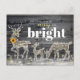 Carte Postale Joyeux Noël rustique et Rennes de Noël brillantes