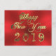 Carte Postale Joyeux Nouvel An 2019 Script Red et Gold Chic