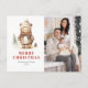 Cette carte postale rustique et confortable présente une aquarelle illustrant un ours brun mignon vêtu de vêtements d'hiver. Les mots "MERRY CHRISTMAS" apparaissent en lettres rouges serif qui se coordonnent avec l'art. Personnalisez-le avec le nom de votre famille et l'année sur le devant en italique gris charbon, avec une photo verticale de vacances familiales. Ajoutez votre adresse de retour et un bref message au verso.
