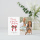 Demandez-vous une carte postale Joyeuse Petite Photo de Noël. Carte postale de Noël minimale avec photo de famille. Lettres manuscrites fantaisistes avec arc rouge, feuilles saints et baies rouges. Ajoutez un message à l'arrière de la carte postale et votre photo de famille préférée à l'avant.