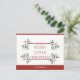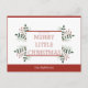 diffusez vos souhaits de vacances avec cette carte postale élégante avec arrière - plan rouge et feuillage vert. police en gras classique avec le message "Ayez vous un joyeux petit noël" et section texte modifiable pour afficher votre nom de famille