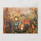 "Joyeux Thanksgiving" avec des animaux de la forêt et des amis dans la brume de l'automne avec un paysage coloré avec beaucoup d'animaux, et des villes vertes, orange et brunes, les couleurs de l'automne. Vous pouvez personnaliser le message et le texte au dos de la carte postale. Il présente divers personnages : une petite fille, des renards, des cerfs, des oiseaux, des corbeaux, des écureuils et des souris. Envoyez-le à vos proches, amis ou membres de la famille.