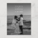 Partagez vos nouvelles avec un faire-part mariage de texte classique moderne, idéal pour les images en noir et blanc mais aussi toute couleur car il y a un dégradé noir graduel en bas et en haut de la carte. Avec une police serif blanche centrée sur votre photo, partagez les nouvelles de vos noces avec votre famille et vos amis et fêtez avec une fête post-mariage.