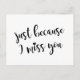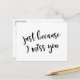 Envoyez une carte postale joyeuse à votre famille et à vos amis pour leur faire savoir que vous les manquez. Un design minimaliste simple avec une calligraphie manuscrite moderne. Personnalisez le dos de cette carte postale "juste parce que vous me manquez" avec votre adresse de retour, message personnalisé, et nom (vous pouvez également supprimer le message et nom pour écrire votre message et nom à la main).