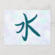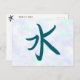 Une belle carte postale avec le kanji pour l'eau. Le sens du kanji est au verso de la carte postale.