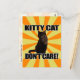 Drôle et mignon chatte chaton s'en fiche. Joli chat noir aux yeux verts jaunes, vous regardant directement comme le méchant et méchant blaireau de miel. Ce chaton s'en fiche, comme le font les chats. Arrière - plan de rayon jaune et orange avec texte noir et blanc en gras. Tous les Designs Copyright © 2012 www.CuteComfy.com