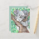 Koala dans Eucalyptus Tree carte postale de l'aquarelle originale et de la peinture mixte. Cette adorable Koala perchée parmi les feuilles verts cool apaisants fait belle façon de rester en contact avec des amis et fait aussi de grands murailles art